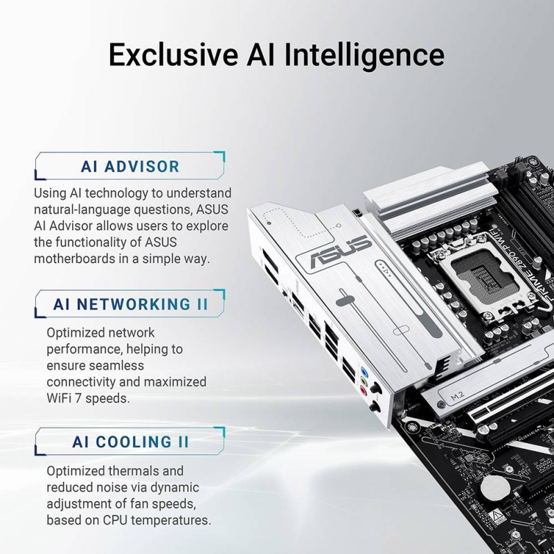 ARREFECIMENTO Soluções térmicas abrangentes incluindo dissipadores de calor VRM, dissipadores M.2 e dissipadores de calor PCH. Tecnologia AI Cooling II que ajusta dinamicamente a velocidade dos ventiladores para otimização térmica e acústica.